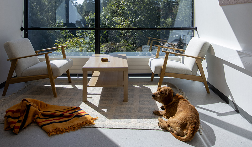 Eläinklinikka oli harvinaisuudessaan herkullinen suunnittelutehtävä. ”Useimmiten arkkitehtina pääsee samaistumaan suunnittelutehtävään erilaisten ihmisten näkökulmasta, mutta lemmikin näkökulma oli itselleni uusi ja liikuttava”, sanoo eläinklinikan projektipäällikkönä toiminut arkkitehti Elina Järvelä.